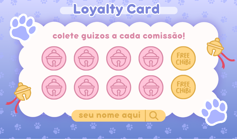 A cada comissão, você coletará um guizo! Coletando 4 você receberá um arte chibi gratuita!